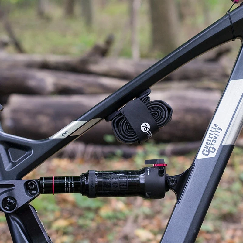 Auf der Halteplatte werden dann 29er Schlauch oder Luftpumpe mit einem Klett-Strap festgeschnallt. Ein weiteres Silikonband zur Verbindung mehrerer Gegenstände untereinander ist ebenfalls enthalten.