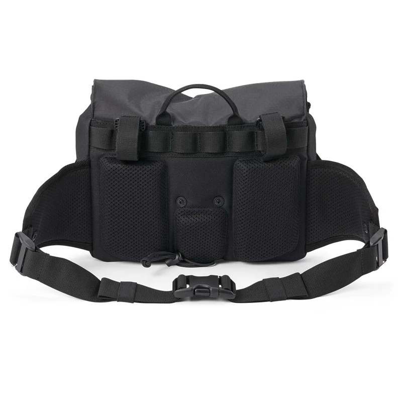 Die Waist Pack hat ein großes Hauptfach, mit zwei seitlich eingearbeiteten Netztaschen für Kleinteile. Der variable Rolltopverschluss bringt zwei entscheidende Vorteile gegenüber anderen Taschen: Je nachdem, wieviel Raum du benötigst, wächst die Tasche von 5 auf 9 Liter Volumen. Der Fidlock-Verschluss sichert dabei die Öffnung zuverlässig. Mit dem Rolltop öffnet das Hauptfach auch schneller und weiter als bei Taschen mit Klappen oder Reißverschlüssen. Damit eignet sich die Waist Pack auch bestens, um den spontanen Einkauf nach Hause zu transportieren. Und auch in der Dämmerung bist du mit ihr sicherer unterwegs, da breite Reflektorstreifen aufgenäht sind.