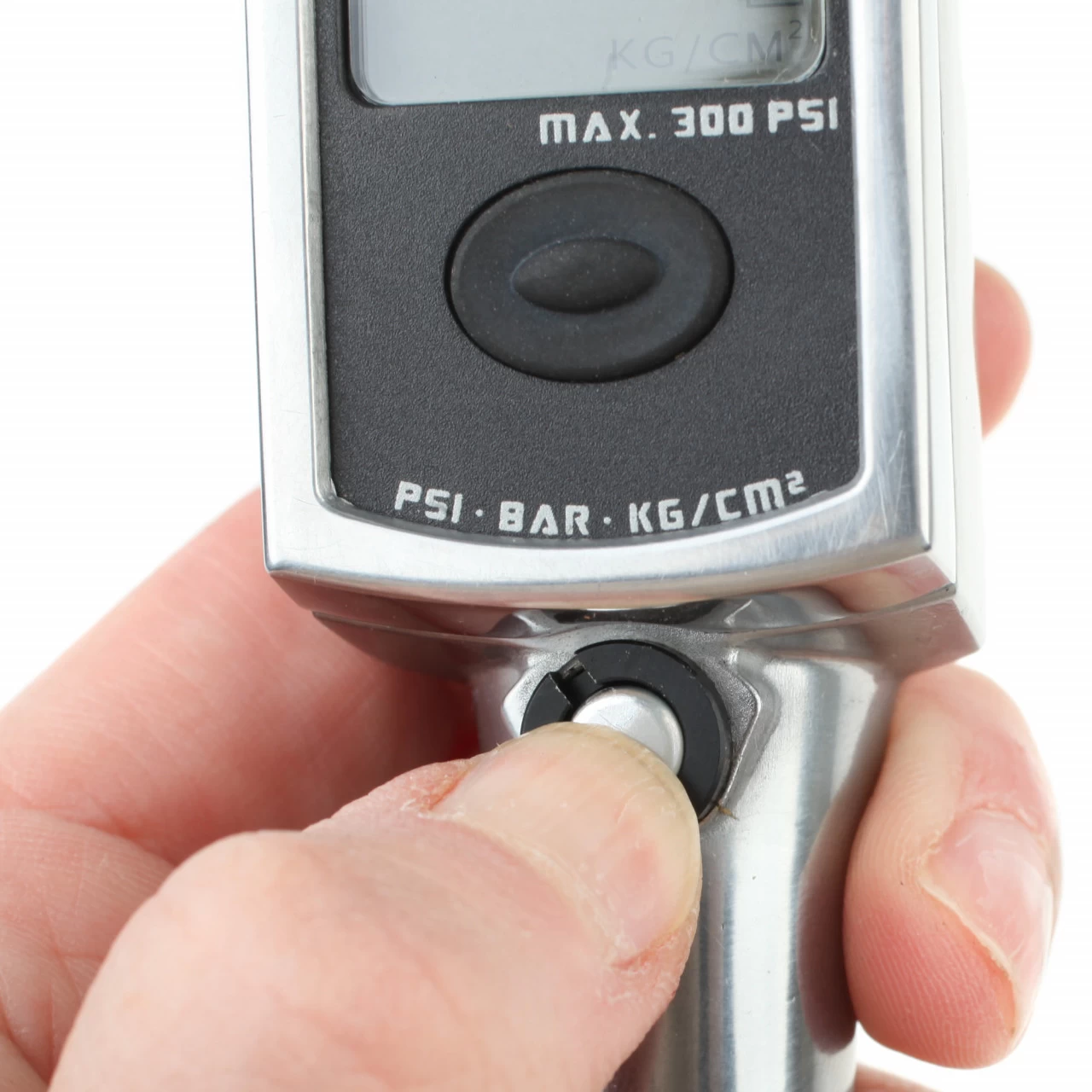 Wenn Ihr großen Wert auf einen exakten Wert beim Luftdruck in Euren Dämpfern legt, dann ist diese Dämpferpumpe genau das Richtige. Sie ist sehr präzise, dank des digitalen Nanometers und sie kann sehr hohe Luftdrücke bis zu 300 PSI pumpen. Das Alu-Gehäuse ist extrem hochwertig und damit natürlich auch sehr langlebig. Die Digitalanzeige wird mit einer CR2032 Knopfzelle versorgt, die Batterie hält sehr lange. Nach ca. 80 Sek. schaltet sich die Anzeige automatisch wieder aus. Die Werte können in Bar, PSI und kg / cm2 angezeigt werden.