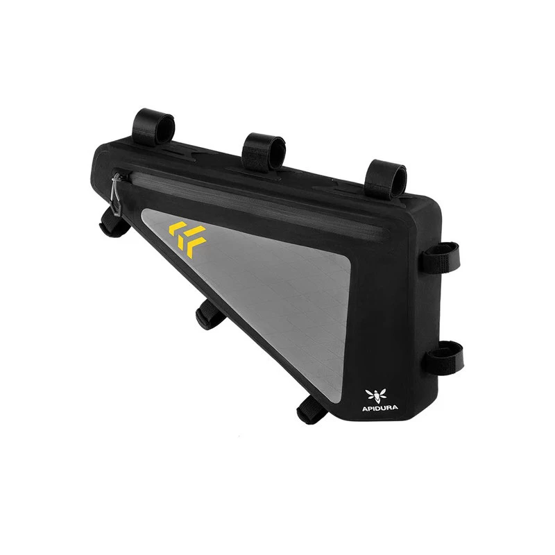 Die Full Frame Pack kann ganz einfach per Klettverschluss an dem Ober-, Unter- und Sitzrohr befestigt werden. Zwei Reißverschlussöffnungen erlauben schnellen Zugriff auf den Tascheninhalt.