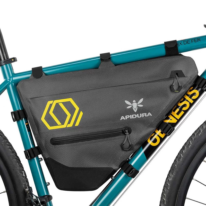Die Expedition-Serie von Apidura macht ihrem Namen alle Ehre: Hergestellt aus einem besonders leichten, dreilagigen Laminatstoff garantieren die Taschen maximalen Schutz vor den Elementen. Wasserdicht versiegelte Nähte und Reißverschlüsse schützen deine Ausrüstung vor Regen und Spritzwasser. Die Außenhülle ist außerdem mit hellen, reflektierenden Aufdrucken versehen – wertvolle zusätzliche Sichtbarkeit, falls dich deine Route entlang befahrener Straßen führt.