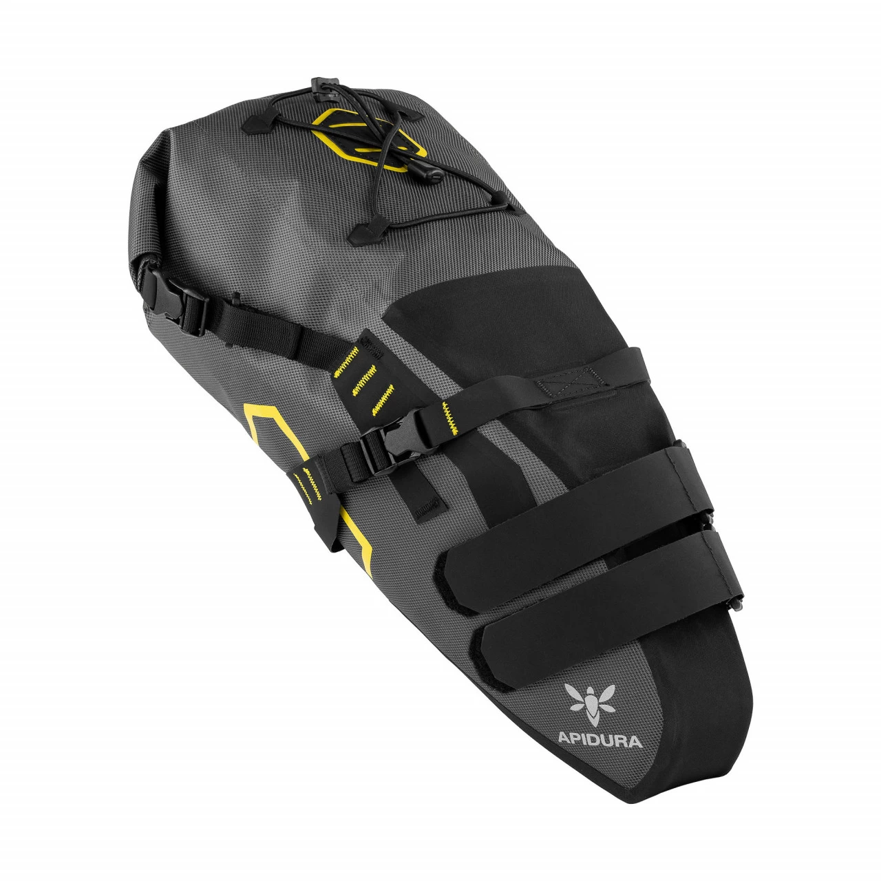 Die Expedition Saddle Pack wird aus 3-lagigem laminierten Stoff hergestellt, extra nach Apidura-Vorgaben. Das Material ist leicht und gleichzeitig sehr abrieb- und reissfest. Die sichtbaren Schweißnähte zeigen zudem die Wasserfestigkeit.