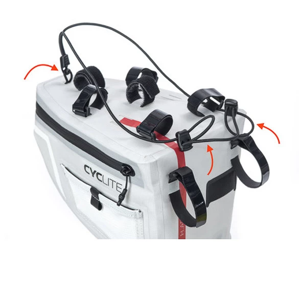 Mit diesem elastischen Gurt kannst du zusätzliche Ausrüstung oder Essen auf der Handle Bar Aero Bag Lenkertasche befestigen.