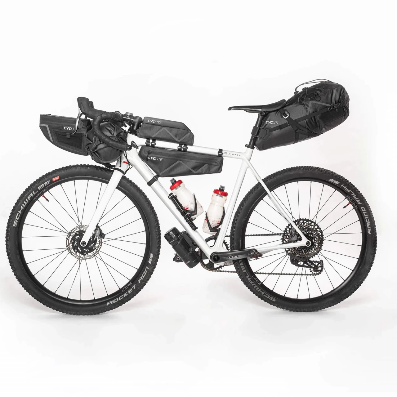 CYCLITE ist eine junge Firma aus den bayerischen Alpen – mit einem einfachen Ziel: das leichteste Bikepacking-System auf dem Markt zu entwickeln! Die Frame Bag ist mit nur 148 Gramm Leergewicht Ausdruck dieser Philosophie. Sie besitzt Verstärkungselemente aus Carbon, die entfernt werden können und das Gewicht noch weiter reduzieren, auf nur noch 98 Gramm. Eine echte Immer-dabei-Tasche!