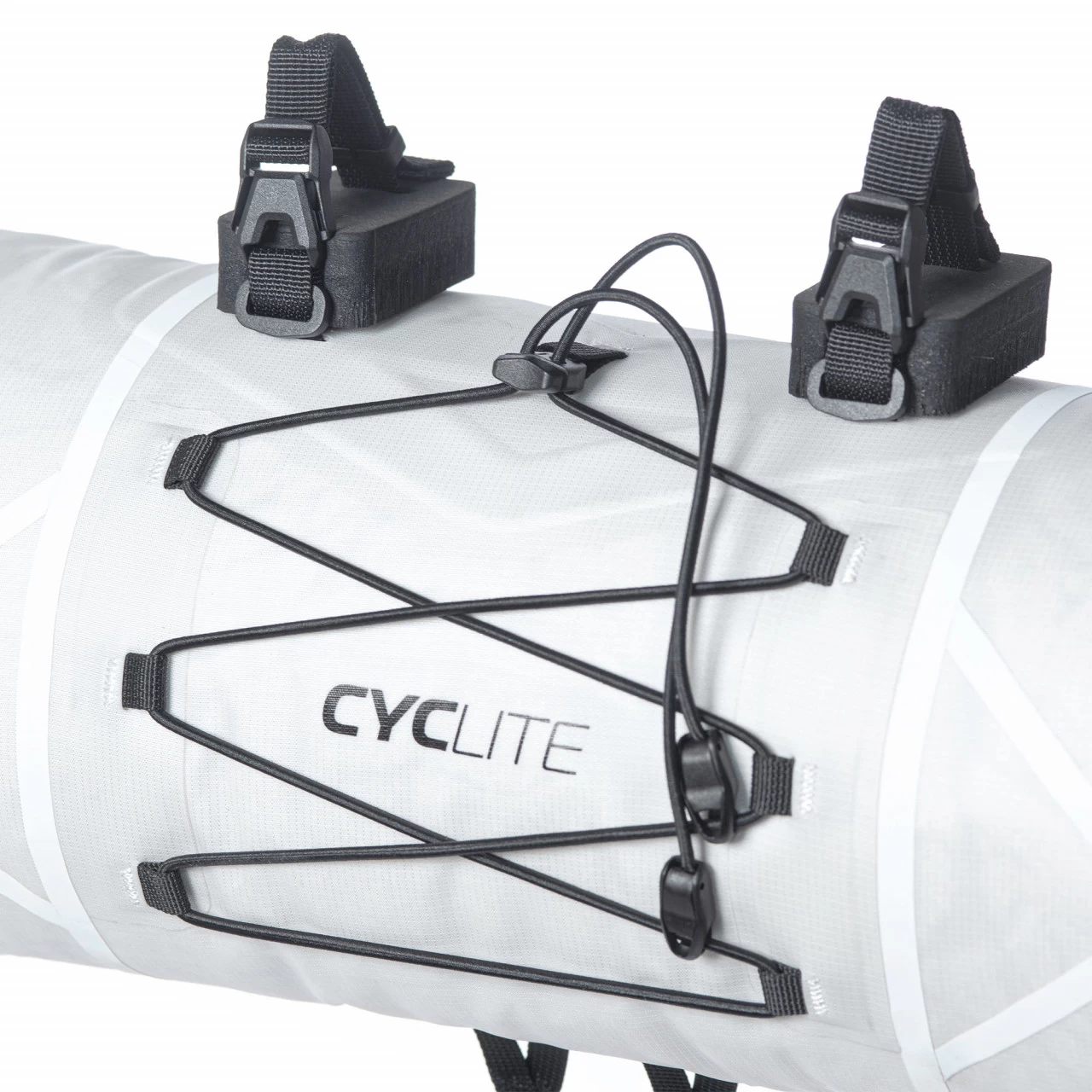 CYCLITE ist eine junge Firma aus den bayerischen Alpen – mit einem einfachen Ziel: das leichteste Bikepacking-System auf dem Markt zu entwickeln! Und auf dem Weg dorthin ist die HANDLE BAR ROLL BAG ein Meilenstein, denn sie kann bei nur 198 Gramm Eigengewicht bis zu 12,6 Liter Volumen aufnehmen. Ideal also, um Bikepacking-Gepäck wie Schlafsäcke, Nahrung und anderes unterzubringen. Außerdem lässt sie sich prima mit der stromlinienförmigen AERO BAG kombinieren.