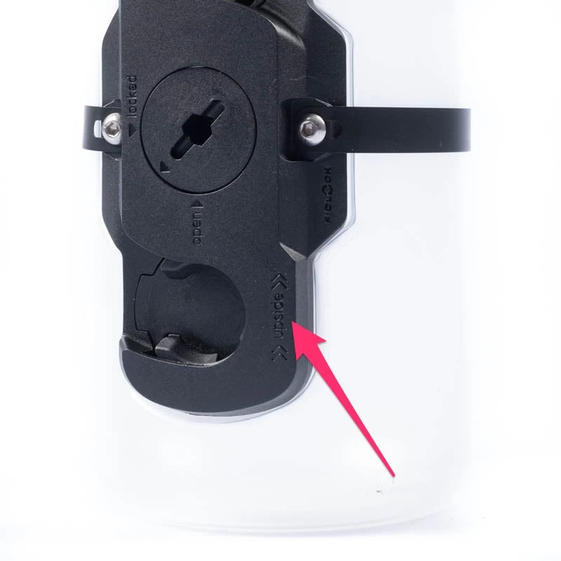 Ihr müsst einfach nur Eure vorhandene Halterung abnehmen und diese hier anbringen. Ein Stahlband um die Flasche herum macht das System noch stabiler, die Flasche kann mit Stahlband auch kopfüber angebracht werden (z.B. am Unterrohr).