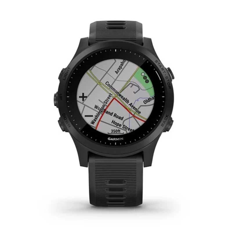 Außerdem ist jetzt Kartenmaterial vorinstalliert, sodass Ihr Euch Strecken auf die Uhr laden könnt und auf der Karte seht, wo Ihr langlaufen müsst.Die Forerunner 945 Highend GPS-Multisportuhr ist leicht und bequem, sodass du sie den ganzen Tag lang tragen kannst. Der 945 ist mit den QuickFit-Wechselarmbändern kompatibel, die sich im Handumdrehen austauschen lassen. Es gibt für jede Gelegenheit das richtige Armband und der Wechsel vom sportlichen Silikonarmband zum klassischen Lederarmband oder sogar zum edlen Metallarmband ist ganz einfach und ohne Werkzeug erledigt.