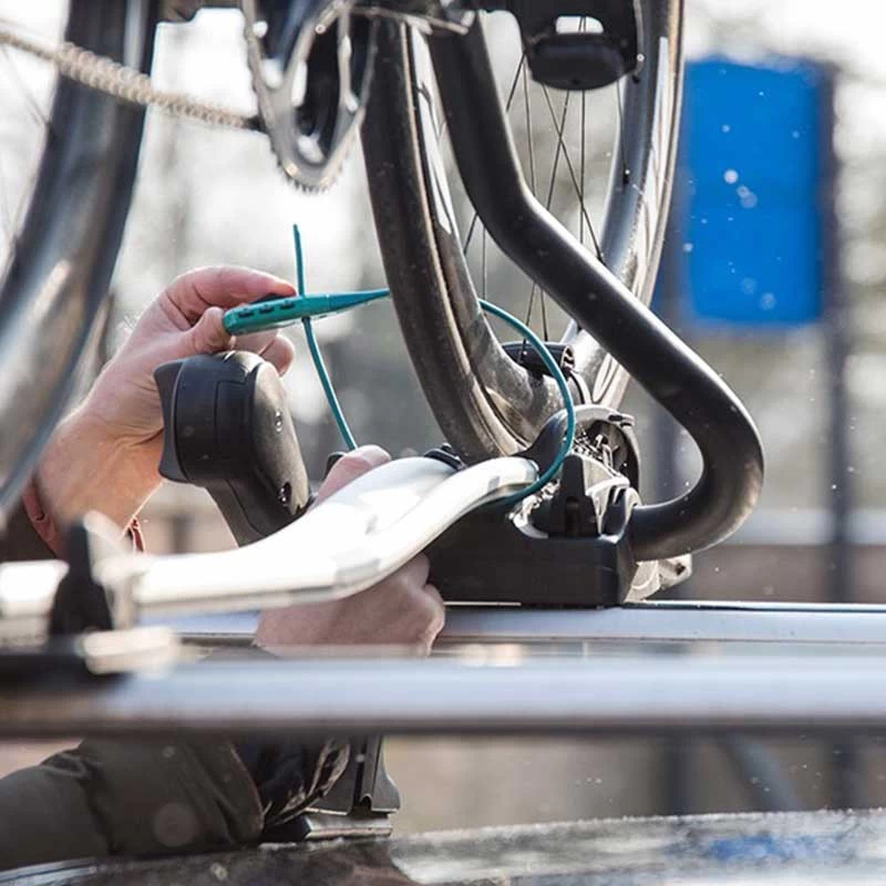 Die Kabelbinder-Schlösser sind nicht nur als Schloss einsetzbar. Man kann auch Pedale, Laufräder, etc. zusätzlich am Heckträger sichern oder auch im Kofferraum des Autos die einzelnen Rad-Teile sicher miteinander befestigen. Auch im Radkoffer kann man mit den Schlössern z.B. den Lenker sicher an der Gabel fixieren, damit nichts verrutschen kann. Und gerade Urlaub darf das Z-Lok sowieso nicht fehlen.
