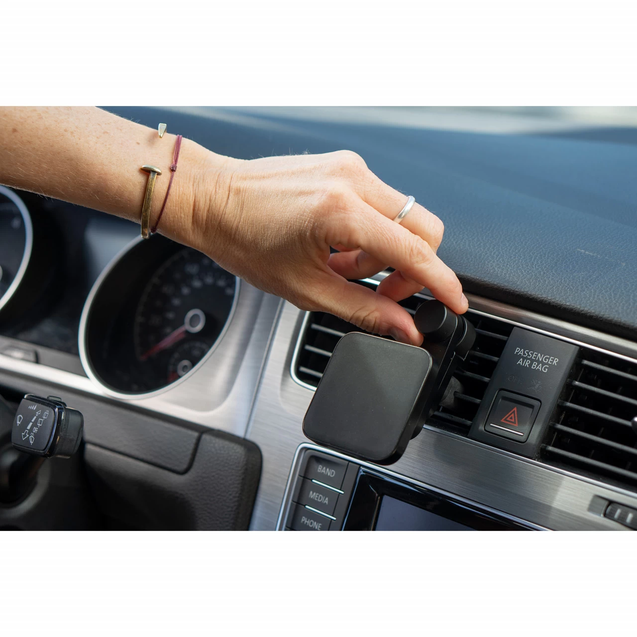 - Lamellen, an denen die Halterung befestigt ist, nicht öffnen, wenn die Heizung an ist. Das Smartphone kann sonst überhitzen.