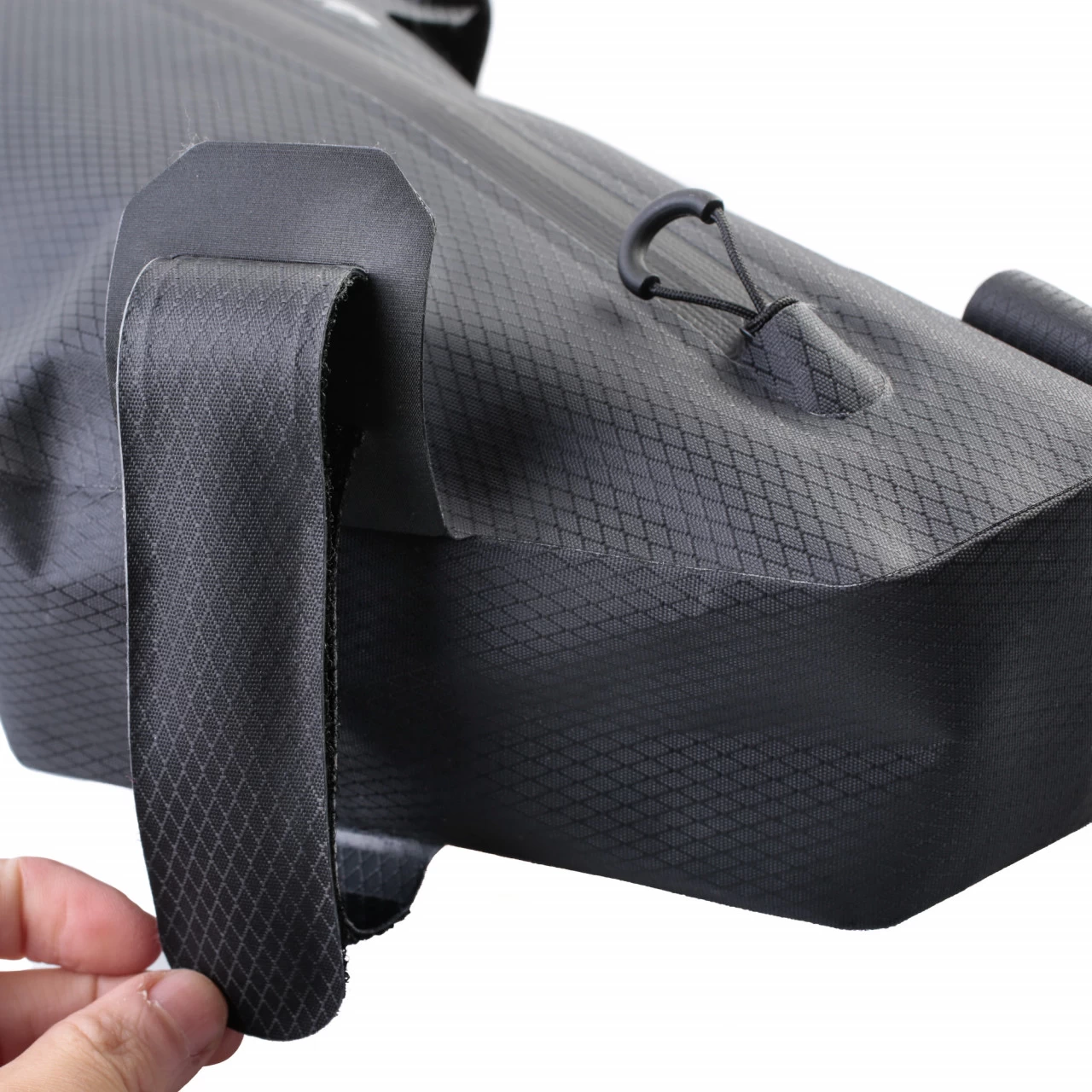 Die Klettverschlüsse für Ober- und Sattelrohr sind rahmenschonend gepolstert. Auch wenn du einen Carbonrahmen fährst, musst du dir keine Sorgen um dein Bike machen! Gleichzeitig ist die Tasche fest verankert, und sorgt für stabile Lage mit niedrigem Schwerpunkt.