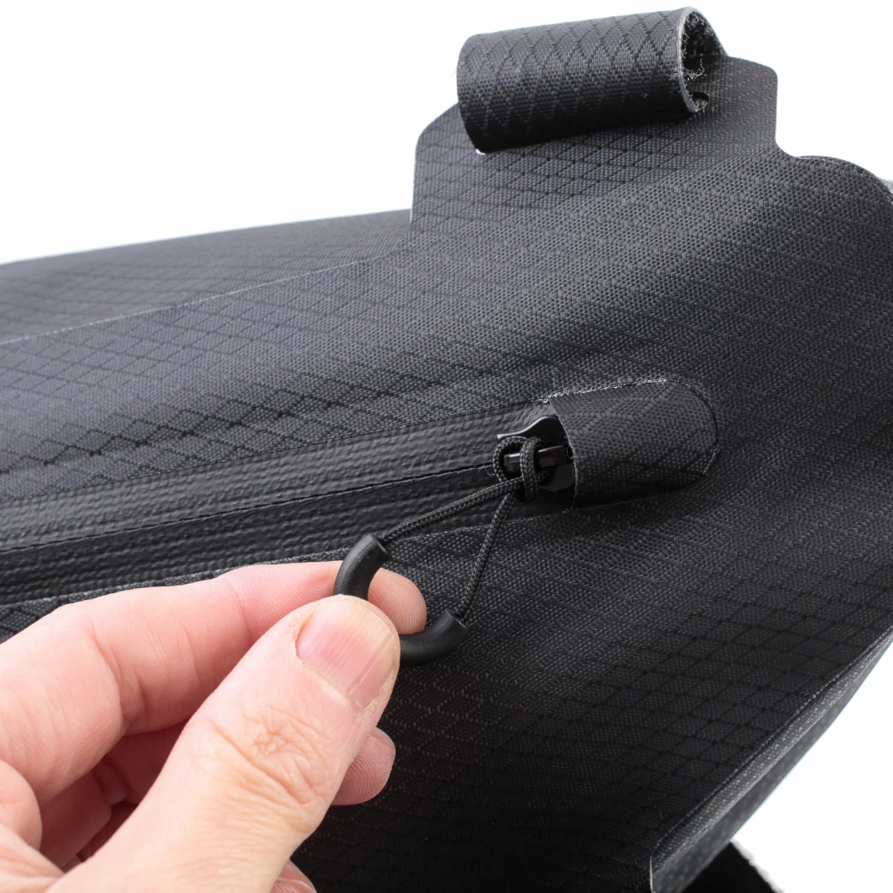 Die Discover-Serie von Pro Bikeparts konzentriert sich ganz darauf, hochwertiges Zubehör für Gravelbikes zu bieten, welches widerstandsfähig und stabil genug ist, um den hohen Anforderungen rauer Graveltracks Paroli zu bieten. Für die Rahmentasche bedeutet das vor allem Wasserfestigkeit: Die Reißverschlüsse sind geschützt, die Nähte verschweißt und das Material weist bis zu 10.000 mm Wassersäule ab.