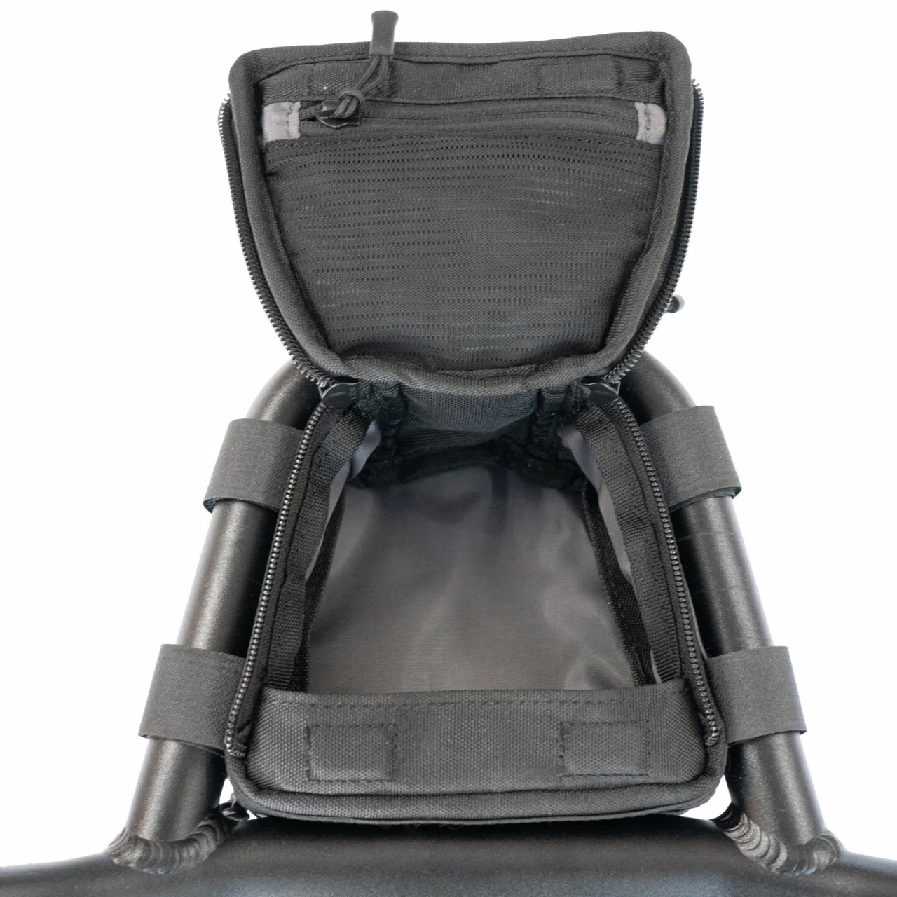 Mit dieser Tasche wird der Loop zum Stauraum! 0,75 Liter Volumen bieten Platz für Riegel, kleines Werkzeug, Tubeless-Patronen oder deine Wertsachen. Komplett aus ballistischem Nylon hergestellt, wird sie Mit vier stabilen Ösen ist sie fest am Lenker verankert. Die Tasche lässt sich nach oben hin aufklappen, im Deckel befindet sich auch ein Innenfach für Kleinteile. Um besonders schnell an den Inhalt zu kommen kannst du den Reißverschluss auch offen lassen – zwei starke Magneten sichern den Deckel und halten ihn geschlossen.