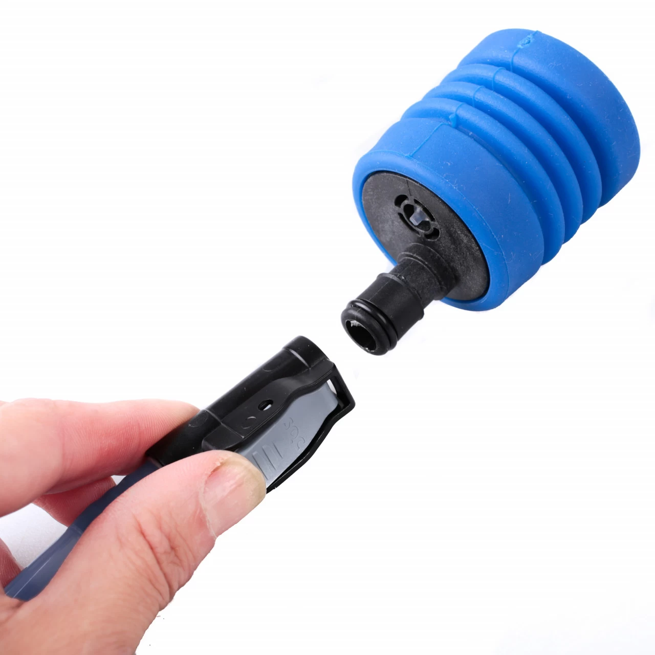 Mit diesem Nachfüllsystem kannst du deine Trinkblase super schnell und unkompliziert auffüllen ohne sie aus dem Rucksack zu holen. Du musst lediglich eine Wasserflasche oder einen Wasserhahn mit dem Adapter verbinden und schon kannst du das Wasser per Trinkschlauch einfüllen.
