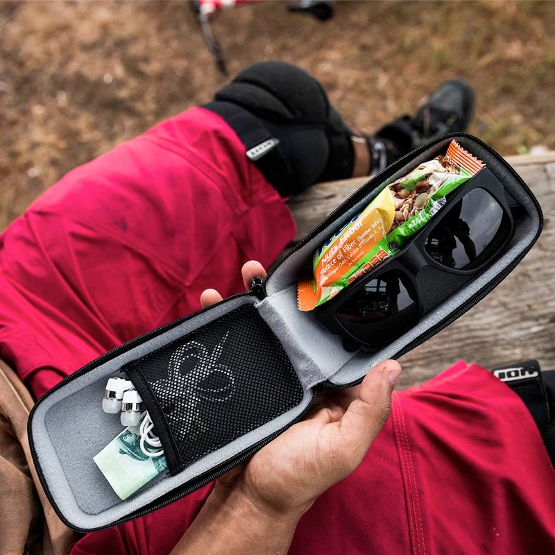 Brieftasche, Schlüssel und Co. jedes Mal aus der Lenkertasche kramen? Mit dem SP Connect-Befestigungssystem gibt es eine elegantere Lösung: Wertsachen, Sonnenbrille, Energieriegel, Schlüssel kommen einfach ins Wedge Case! Hier sind sie nicht nur in Reichweite aufbewahrt sondern durch die Hartschale und einen Doppel-Reißverschluss gut geschützt. In der Deckelklappe ist außerdem eine kleine Netztasche für Karten und ähnliche flache Gegenstände. Das Case besitzt dieselben Anschlüsse wie die Smartphone-Halterungen und wird genauso unkompliziert befestigt. Zum Set gehören sowohl Stem Cap Mount als auch Universal Mount.