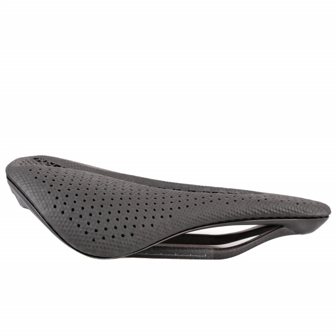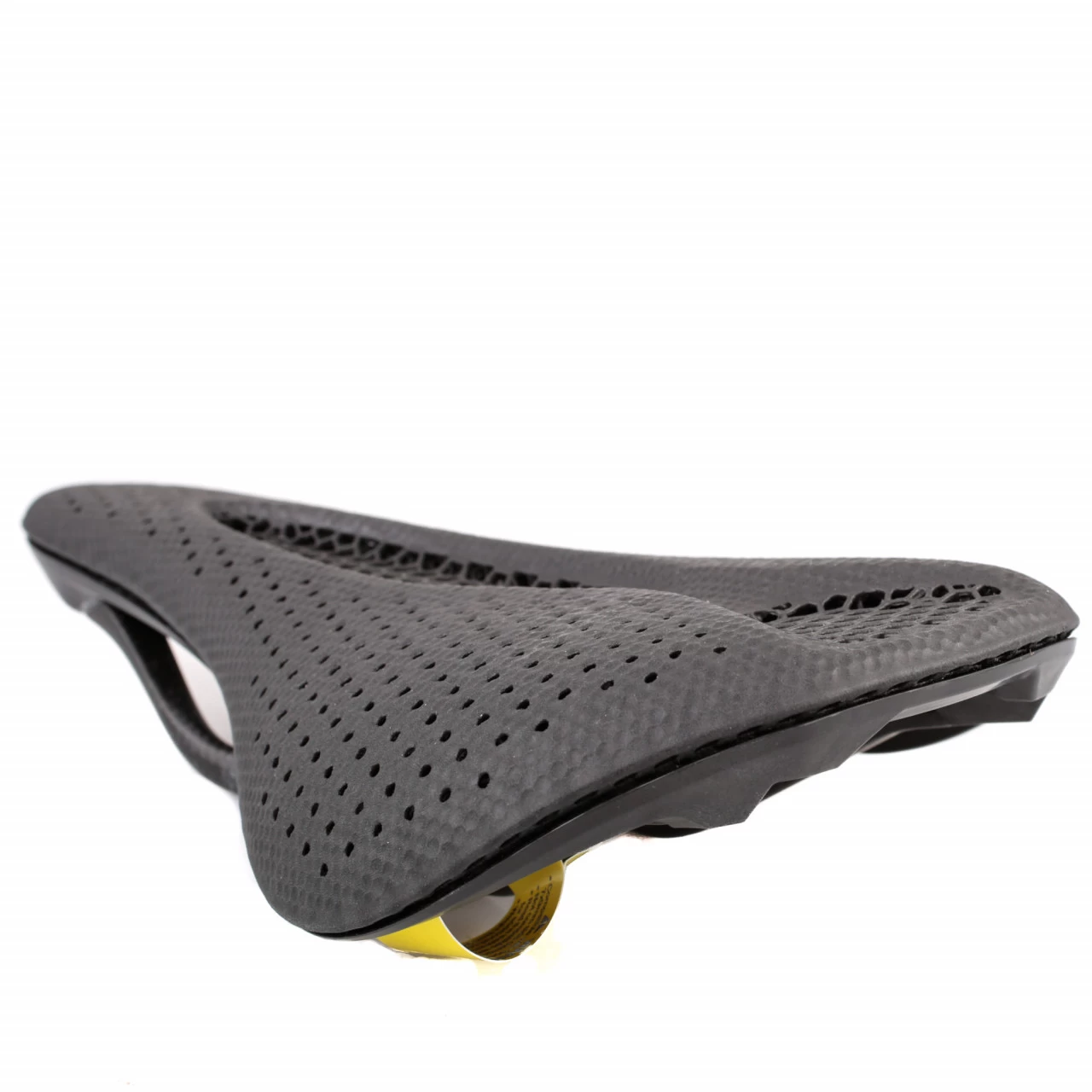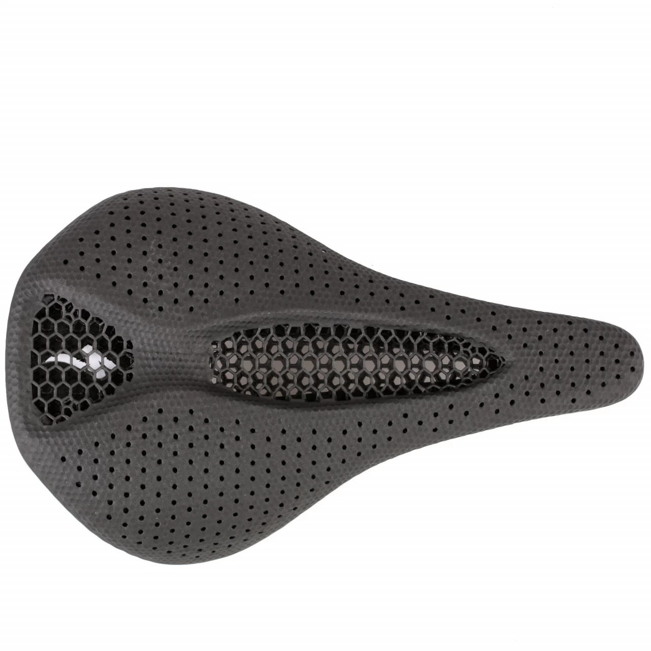 Mit dieser patentierten Technologie hat S-Works eine einzigartige Wabenstruktur für die Satteloberfläche geschaffen. Um es ganz genau zu sagen: Das Sitzpolster des Sattels besteht aus einer Matrix mit 14.000 Verstrebungen und 7.799 Knoten. Diese Struktur bildet ein flexibles, luftiges Kissen – der genaue Gegensatz zum herkömmlichen Schaumstoffsattel, der für Stabilität und Gewichtsersparnis stark verdichtet ist. Das kann dort, wo die Sitzknochen aufliegen, zu unangenehmen Druckstellen führen. Die Mirror-Technologie passt sich stattdessen ergonomisch an deine Anatomie an: Das Wabengewebe verteilt den Druck auf eine viel größere Fläche und reduziert damit den Druck an genau den kritischen Stellen.