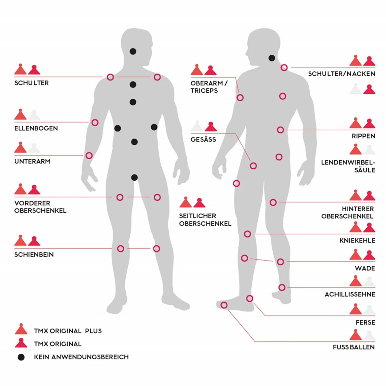 Der TMX Original mit dem 3 cm breiten Triggerkopf eignet sich vor allem für große Muskelgruppen und die unteren Extremitäten: