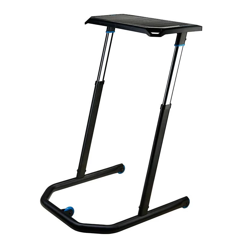 Das beeindruckende an dem Wahoo Kickr Fitnessbike Desk sind die perfekt bis ins Detail durchdachten Ideen. Bis ins letzte Detail ist an alles gedacht worden. Das Gestell ist so geformt, dass genügend Platz für das Vorderrad vorhanden ist. Trotzdem steht der Tisch sehr stabil und läuft auch im komplett ausgefahrenen Zustand nicht Gefahr umzukippen.